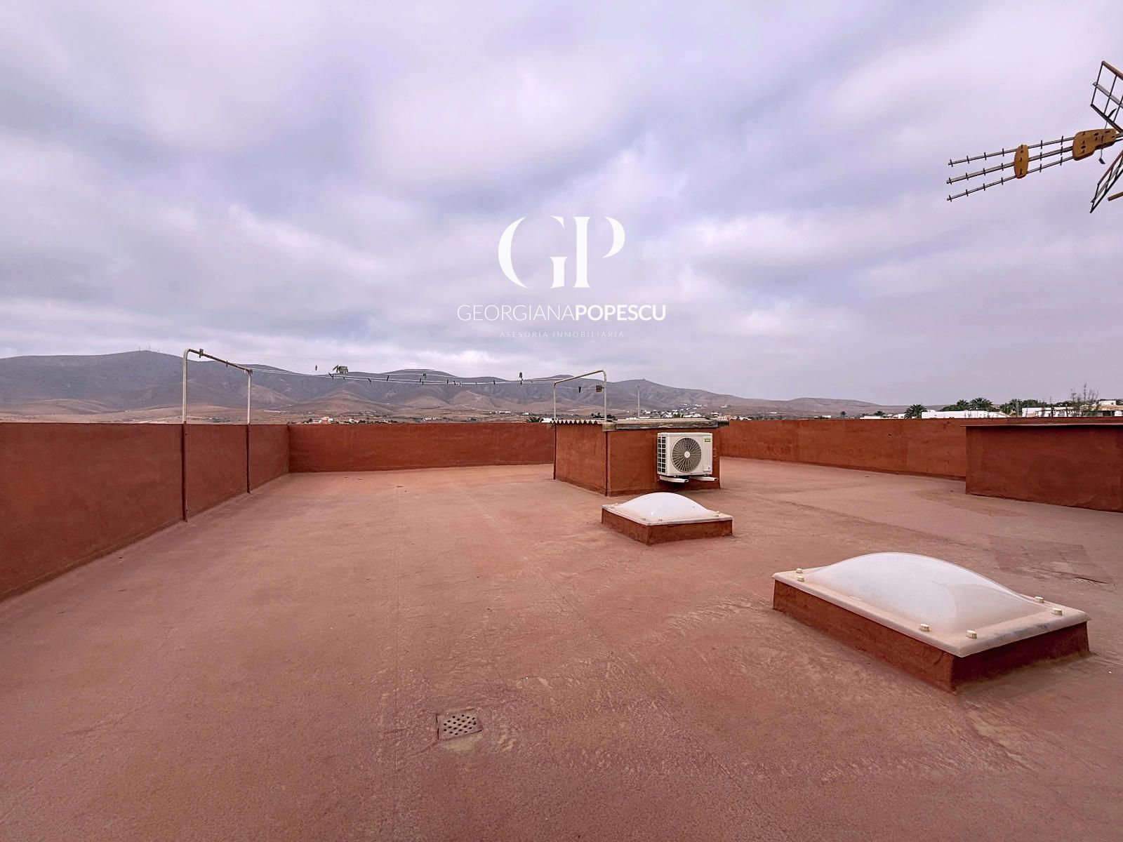 Amplia y luminosa, cuenta con cuatro dormitorios, dos cuartos de baño, una gran cocina totalmente equipada con zona de comedor, y un salón acogedor con detalles en madera y una espectacular escalera abierta que conecta ambas plantas, aportando sensación de amplitud y calidez. En el exterior, dispone de una terraza envolvente decorada con plantas y zonas de descanso, ideal para disfrutar del aire libre y las vistas al entorno rural de Antigua.